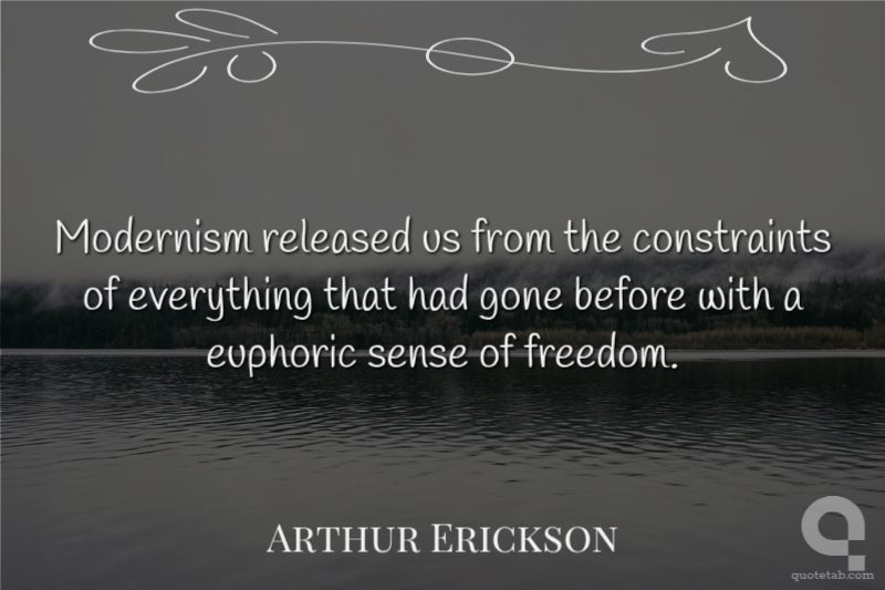 Modernism released us from the constraints of everything that had gone before with a euphoric sense of freedom.