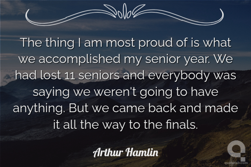 The thing I am most proud of is what we accomplished my senior year. We had lost 11 seniors and everybody was saying we weren't going to have anything. But we came back and made it all the way to the finals.