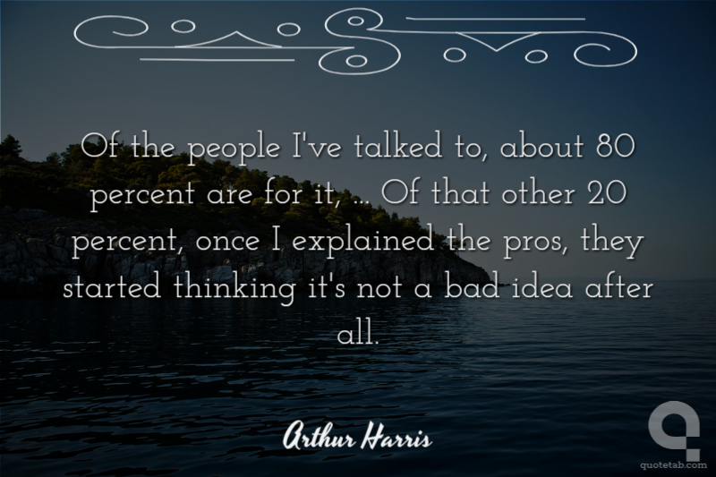 Of the people I've talked to, about 80 percent are for it, ... Of that other 20 percent, once I explained the pros, they started thinking it's not a bad idea after all.