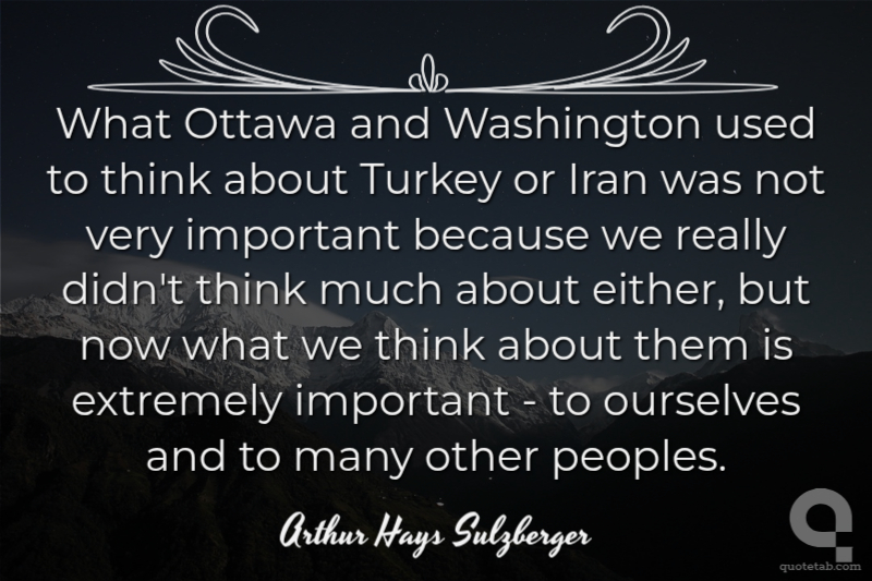 What Ottawa and Washington used to think about Turkey or Iran was not very important because we really didn't think much about either, but now what we think about them is extremely important - to ourselves and to many other peoples.