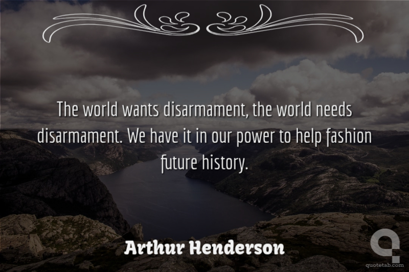 The world wants disarmament, the world needs disarmament. We have it in our power to help fashion future history.