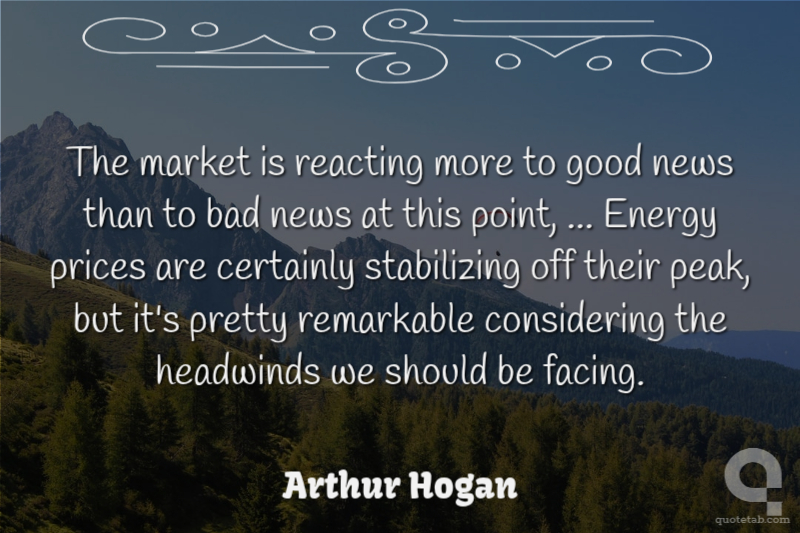 The market is reacting more to good news than to bad news at this point, ... Energy prices are certainly stabilizing off their peak, but it's pretty remarkable considering the headwinds we should be facing.