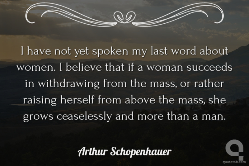I have not yet spoken my last word about women. I believe that if a woman succeeds in withdrawing from the mass, or rather raising herself from above the mass, she grows ceaselessly and more than a man.