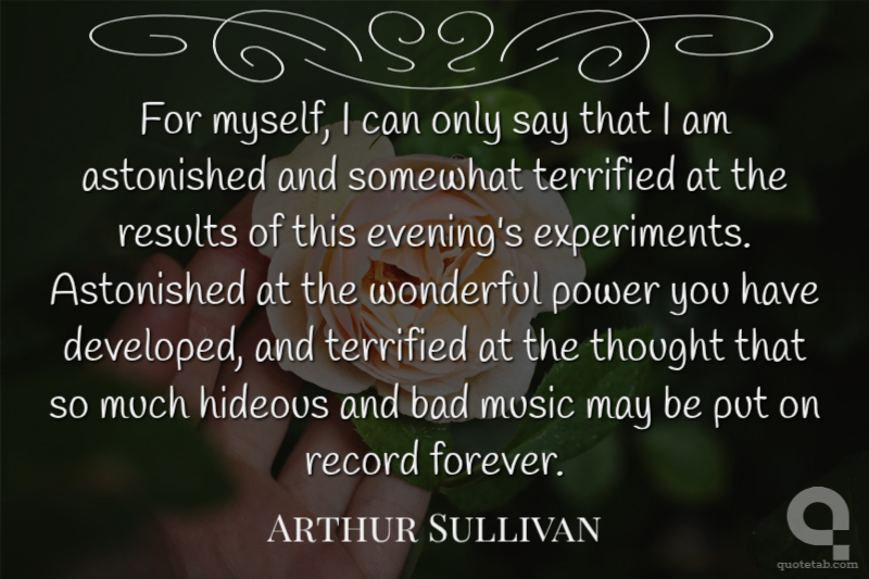 For myself, I can only say that I am astonished and somewhat terrified at the results of this evening's experiments. Astonished at the wonderful power you have developed, and terrified at the thought that so much hideous and bad music may be put on record forever.