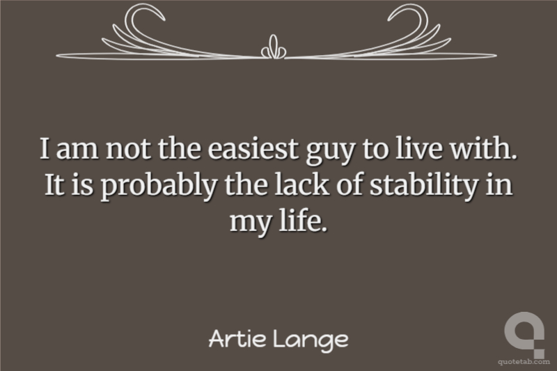 I am not the easiest guy to live with. It is probably the lack of stability in my life.
