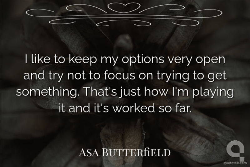 I like to keep my options very open and try not to focus on trying to get something. That's just how I'm playing it and it's worked so far.