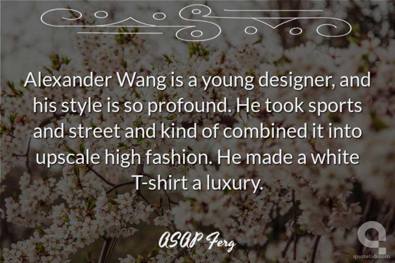 Alexander Wang is a young designer, and his style is so profound. He took sports and street and kind of combined it into upscale high fashion. He made a white T-shirt a luxury.
