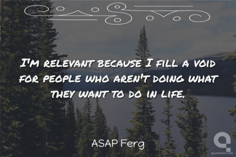 I'm relevant because I fill a void for people who aren't doing what they want to do in life.