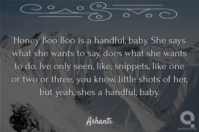Honey Boo Boo is a handful, baby. She says what she wants to say, does what she wants to do. Ive only seen, like, snippets, like one or two or three, you know, little shots of her, but yeah, shes a handful, baby.