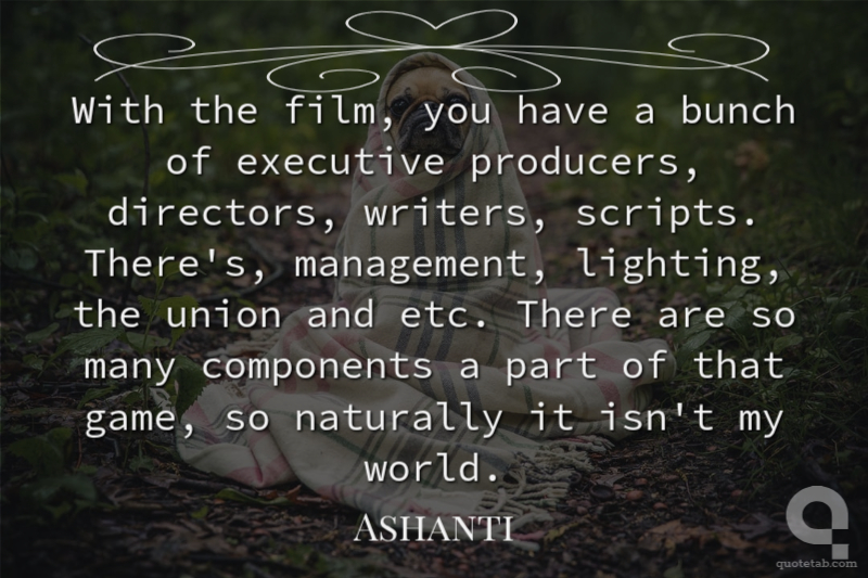 With the film, you have a bunch of executive producers, directors, writers, scripts. There's, management, lighting, the union and etc. There are so many components a part of that game, so naturally it isn't my world.