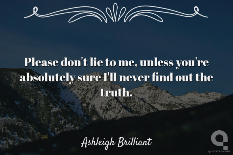 Please don't lie to me, unless you're absolutely sure I'll never find out the truth.