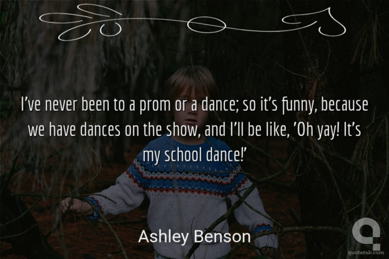 I've never been to a prom or a dance; so it's funny, because we have dances on the show, and I'll be like, 'Oh yay! It's my school dance!'