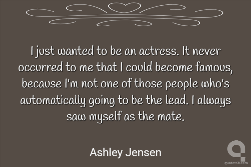 I just wanted to be an actress. It never occurred to me that I could become famous, because I'm not one of those people who's automatically going to be the lead. I always saw myself as the mate.