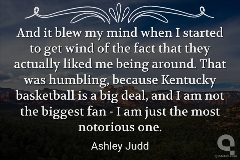 And it blew my mind when I started to get wind of the fact that they actually liked me being around. That was humbling, because Kentucky basketball is a big deal, and I am not the biggest fan - I am just the most notorious one.