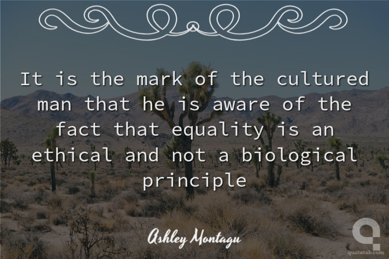It is the mark of the cultured man that he is aware of the fact that equality is an ethical and not a biological principle