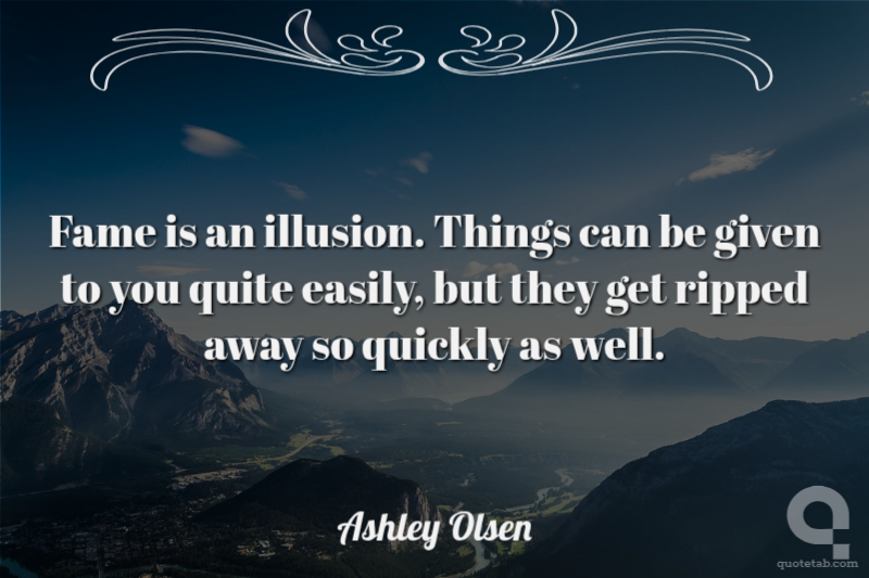 Fame is an illusion. Things can be given to you quite easily, but they get ripped away so quickly as well.