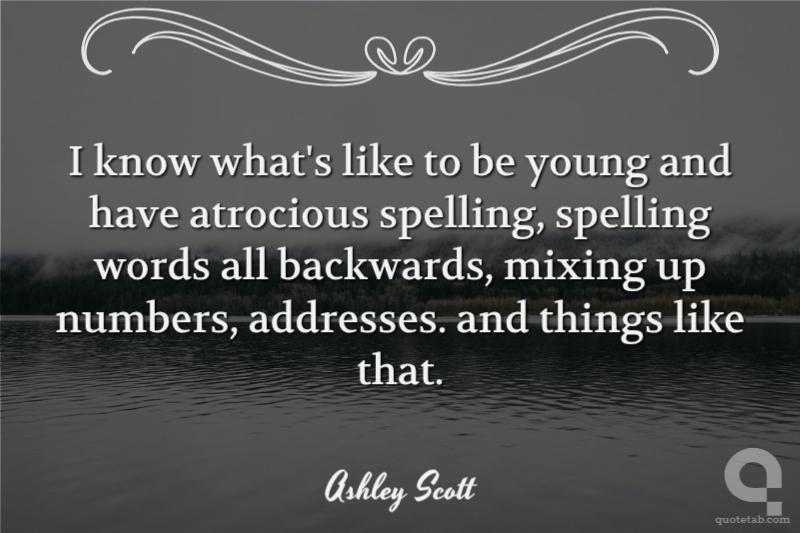 I know what's like to be young and have atrocious spelling, spelling words all backwards, mixing up numbers, addresses. and things like that.