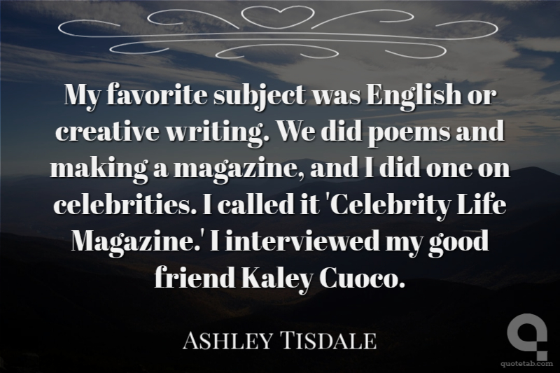 My favorite subject was English or creative writing. We did poems and making a magazine, and I did one on celebrities. I called it 'Celebrity Life Magazine.' I interviewed my good friend Kaley Cuoco.