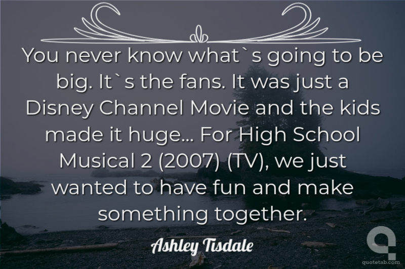 You never know what`s going to be big. It`s the fans. It was just a Disney Channel Movie and the kids made it huge... For High School Musical 2 (2007) (TV), we just wanted to have fun and make something together.