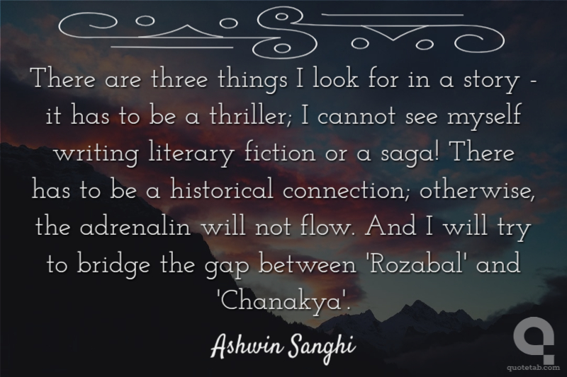 There are three things I look for in a story - it has to be a thriller; I cannot see myself writing literary fiction or a saga! There has to be a historical connection; otherwise, the adrenalin will not flow. And I will try to bridge the gap between 'Rozabal' and 'Chanakya'.
