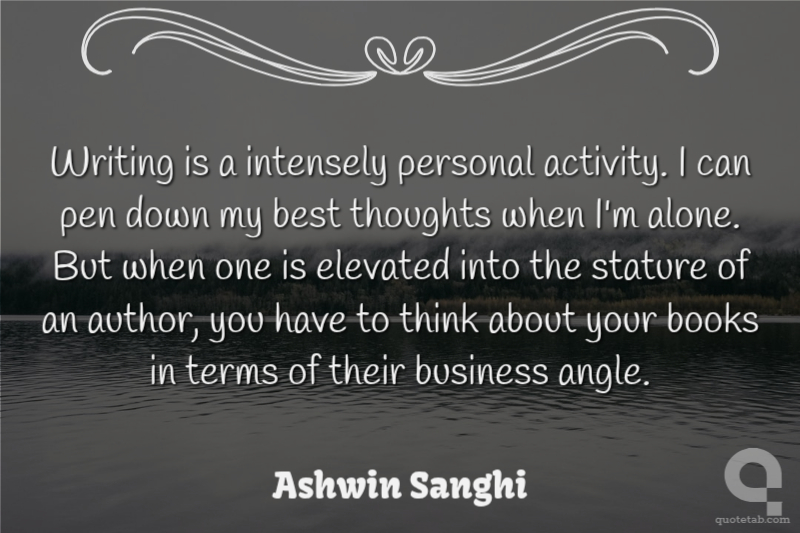 Writing is a intensely personal activity. I can pen down my best thoughts when I'm alone. But when one is elevated into the stature of an author, you have to think about your books in terms of their business angle.