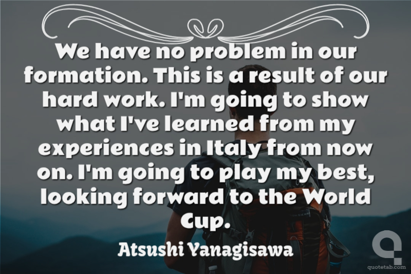 We have no problem in our formation. This is a result of our hard work. I'm going to show what I've learned from my experiences in Italy from now on. I'm going to play my best, looking forward to the World Cup.
