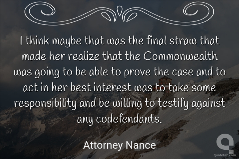 I think maybe that was the final straw that made her realize that the Commonwealth was going to be able to prove the case and to act in her best interest was to take some responsibility and be willing to testify against any codefendants.