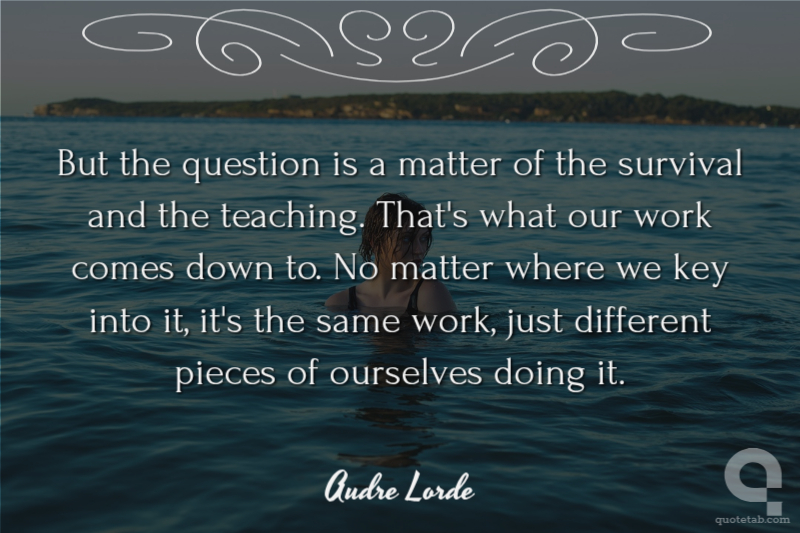 But the question is a matter of the survival and the teaching. That's what our work comes down to. No matter where we key into it, it's the same work, just different pieces of ourselves doing it.