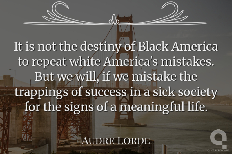 It is not the destiny of Black America to repeat white America's mistakes. But we will, if we mistake the trappings of success in a sick society for the signs of a meaningful life.