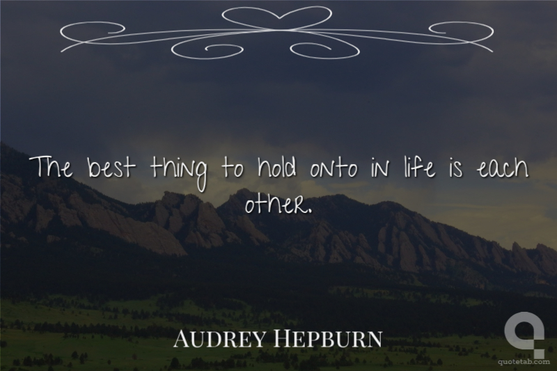 The best thing to hold onto in life is each other.