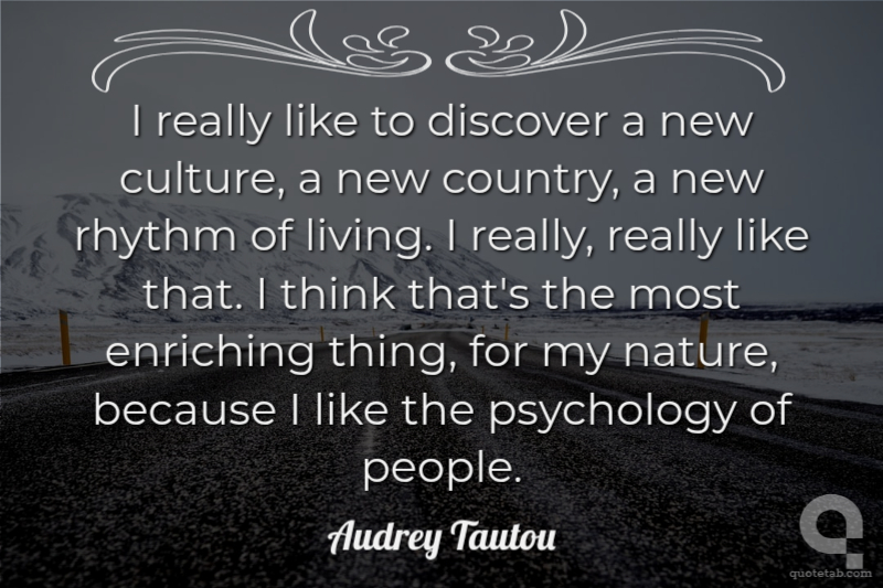 I really like to discover a new culture, a new country, a new rhythm of living. I really, really like that. I think that's the most enriching thing, for my nature, because I like the psychology of people.