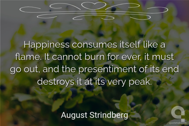 Happiness consumes itself like a flame. It cannot burn for ever, it must go out, and the presentiment of its end destroys it at its very peak.
