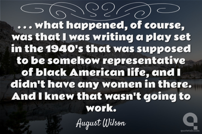 . . . what happened, of course, was that I was writing a play set in the 1940's that was supposed to be somehow representative of black American life, and I didn't have any women in there. And I knew that wasn't going to work.