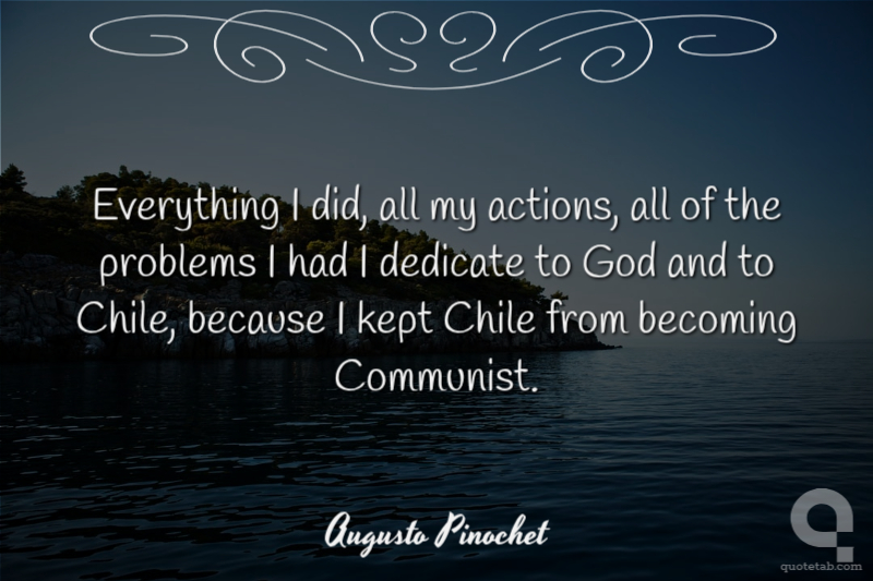 Everything I did, all my actions, all of the problems I had I dedicate to God and to Chile, because I kept Chile from becoming Communist.
