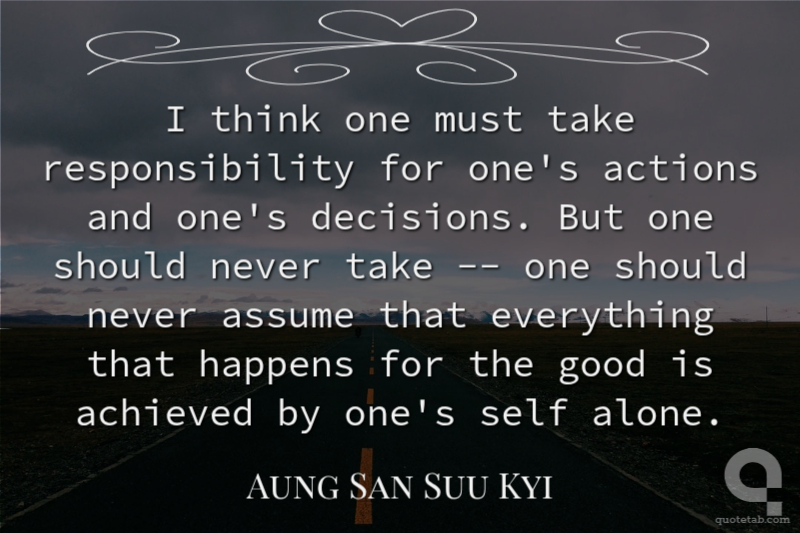 I think one must take responsibility for one's actions and one's decisions. But one should never take -- one should never assume that everything that happens for the good is achieved by one's self alone.