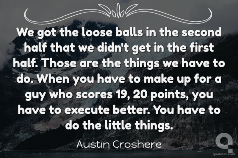 We got the loose balls in the second half that we didn't get in the first half. Those are the things we have to do. When you have to make up for a guy who scores 19, 20 points, you have to execute better. You have to do the little things.