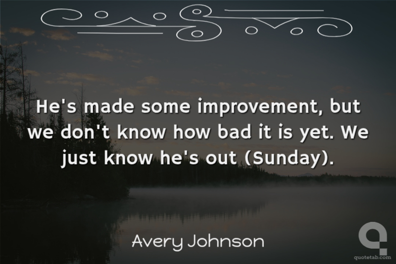 He's made some improvement, but we don't know how bad it is yet. We just know he's out (Sunday).