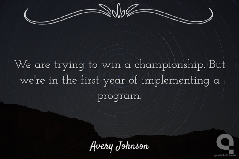 We are trying to win a championship. But we're in the first year of implementing a program.