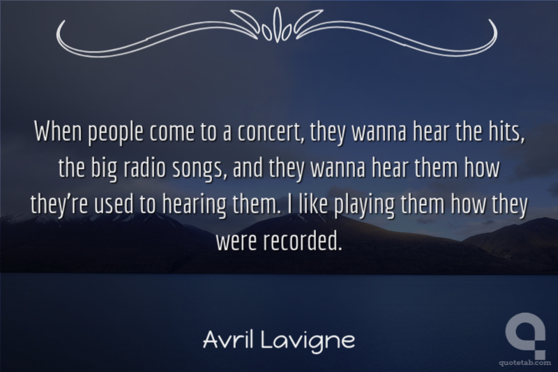 When people come to a concert, they wanna hear the hits, the big radio songs, and they wanna hear them how they're used to hearing them. I like playing them how they were recorded.