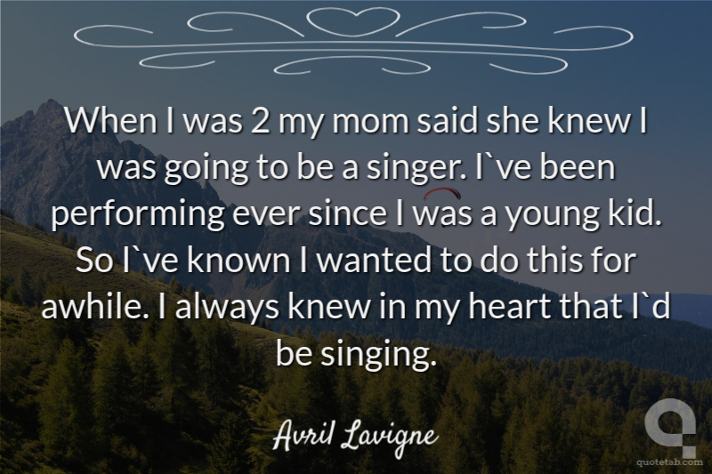 When I was 2 my mom said she knew I was going to be a singer. I`ve been performing ever since I was a young kid. So I`ve known I wanted to do this for awhile. I always knew in my heart that I`d be singing.