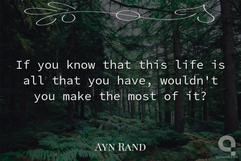 If you know that this life is all that you have, wouldn't you make the most of it?