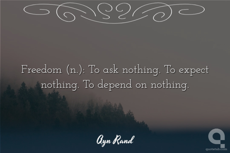 Freedom (n.): To ask nothing. To expect nothing. To depend on nothing.