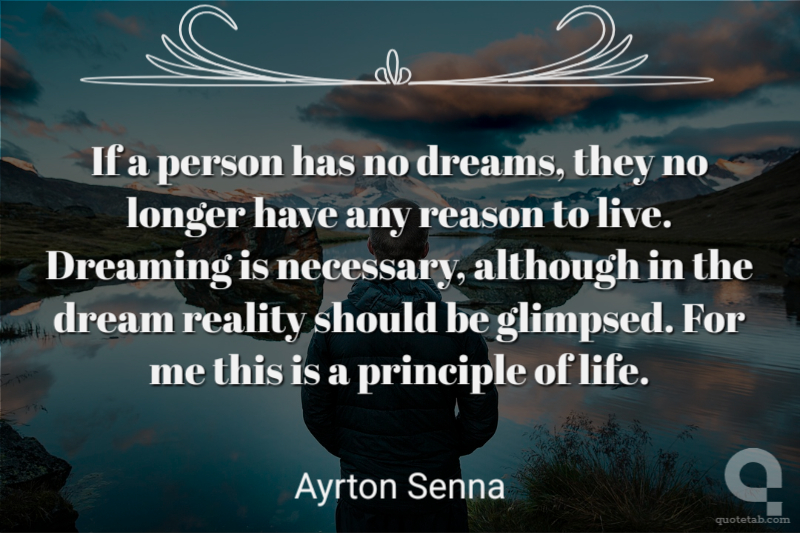 If a person has no dreams, they no longer have any reason to live. Dreaming is necessary, although in the dream reality should be glimpsed. For me this is a principle of life.
