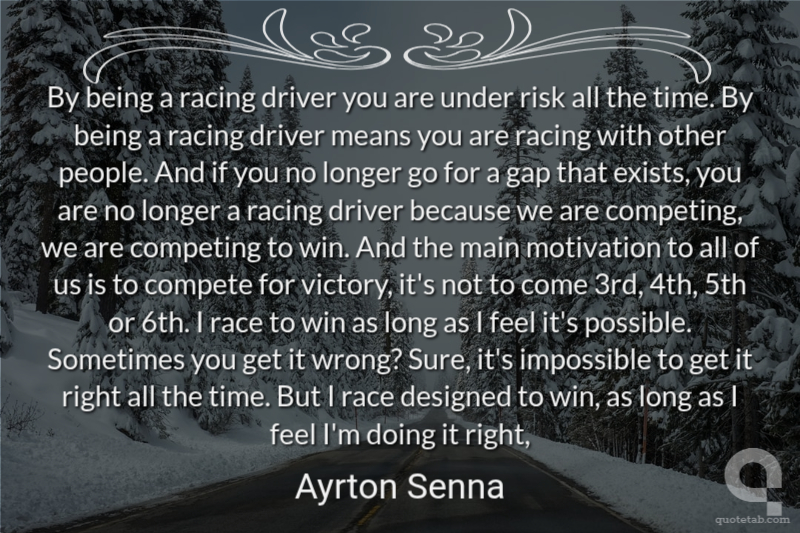 By being a racing driver you are under risk all the time. By being a racing driver means you are racing with other people. And if you no longer go for a gap that exists, you are no longer a racing driver because we are competing, we are competing to win. And the main motivation to all of us is to compete for victory, it's not to come 3rd, 4th, 5th or 6th. I race to win as long as I feel it's possible. Sometimes you get it wrong? Sure, it's impossible to get it right all the time. But I race designed to win, as long as I feel I'm doing it right,