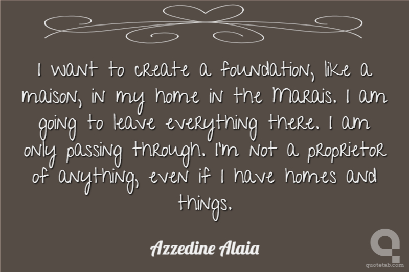 I want to create a foundation, like a maison, in my home in the Marais. I am going to leave everything there. I am only passing through. I'm not a proprietor of anything, even if I have homes and things.