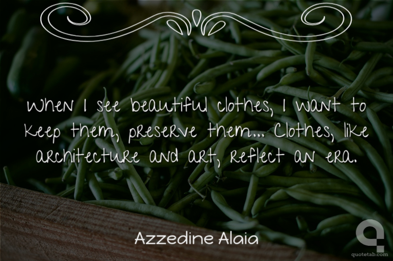 When I see beautiful clothes, I want to keep them, preserve them... Clothes, like architecture and art, reflect an era.