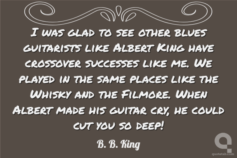 I was glad to see other blues guitarists like Albert King have crossover successes like me. We played in the same places like the Whisky and the Filmore. When Albert made his guitar cry, he could cut you so deep!