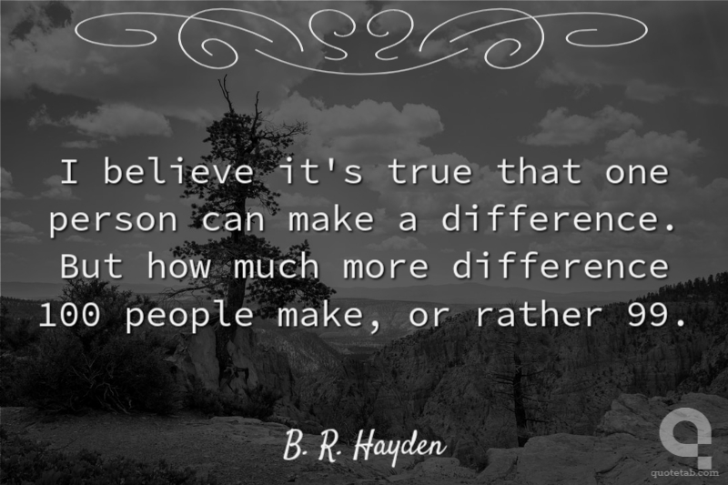 I believe it's true that one person can make a difference. But how much more difference 100 people make, or rather 99.