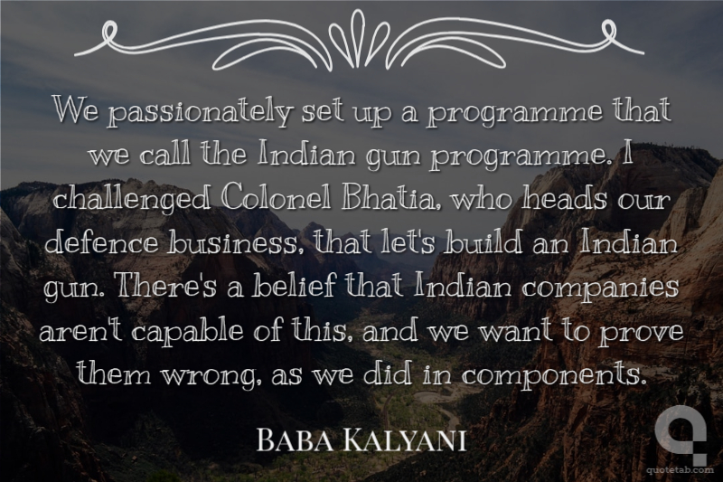We passionately set up a programme that we call the Indian gun programme. I challenged Colonel Bhatia, who heads our defence business, that let's build an Indian gun. There's a belief that Indian companies aren't capable of this, and we want to prove them wrong, as we did in components.