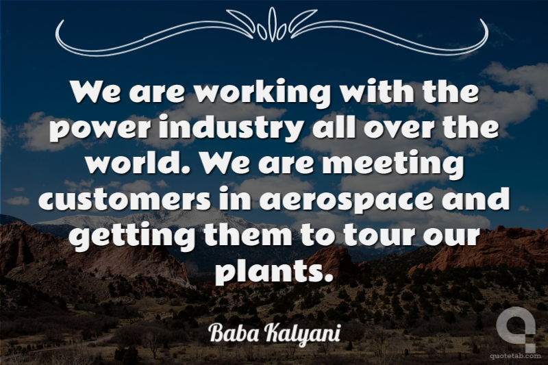 We are working with the power industry all over the world. We are meeting customers in aerospace and getting them to tour our plants.